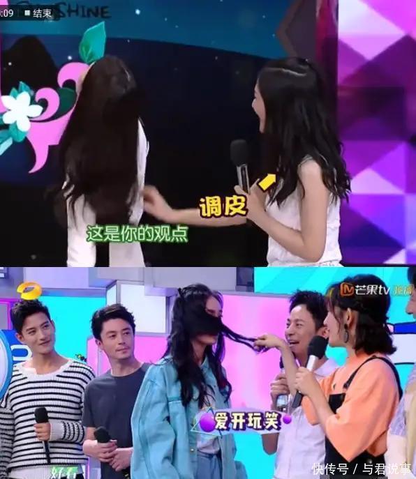 采访不喜别人靠近的何穗杨幂时,谢娜也是又抓人家头发又捏人家胳膊的,让两位女嘉宾面色都不爽了。